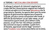 In questa pagina abbiamo raccolto una selezione di articoli giornalistici che parlano di noi, dell’avventura di Daniela Zaccuri e della sua visione, dai primi passi come piccola gastronomia vegana e biologica al ristorante di oggi. Sono rappresentate dalla grande testata nazionale alla rivista specializzata, alla testata straniera. Fin dall’inizio giornalisti affermati hanno intuito la nuova visione del mondo della quale il nostro locale era laboratorio e sono venuti a curiosare, raccontando poi ai loro lettori un pezzo della nostra storia. Altri semplicemente vengono a ristorarsi da noi e ci hanno ritenuti meritevoli di menzione. Attraverso questi articoli potete leggere il percorso del nostro locale, che è indissolubilmente legato a quello del movimento vegano e della cucina naturale torinese, dei quali è motore e nell’ambito dei quali ha contribuito a creare una nuova tradizione gastronomica, tutta sabauda ma capace di influenzare ed ispirare ben oltre i propri confini.